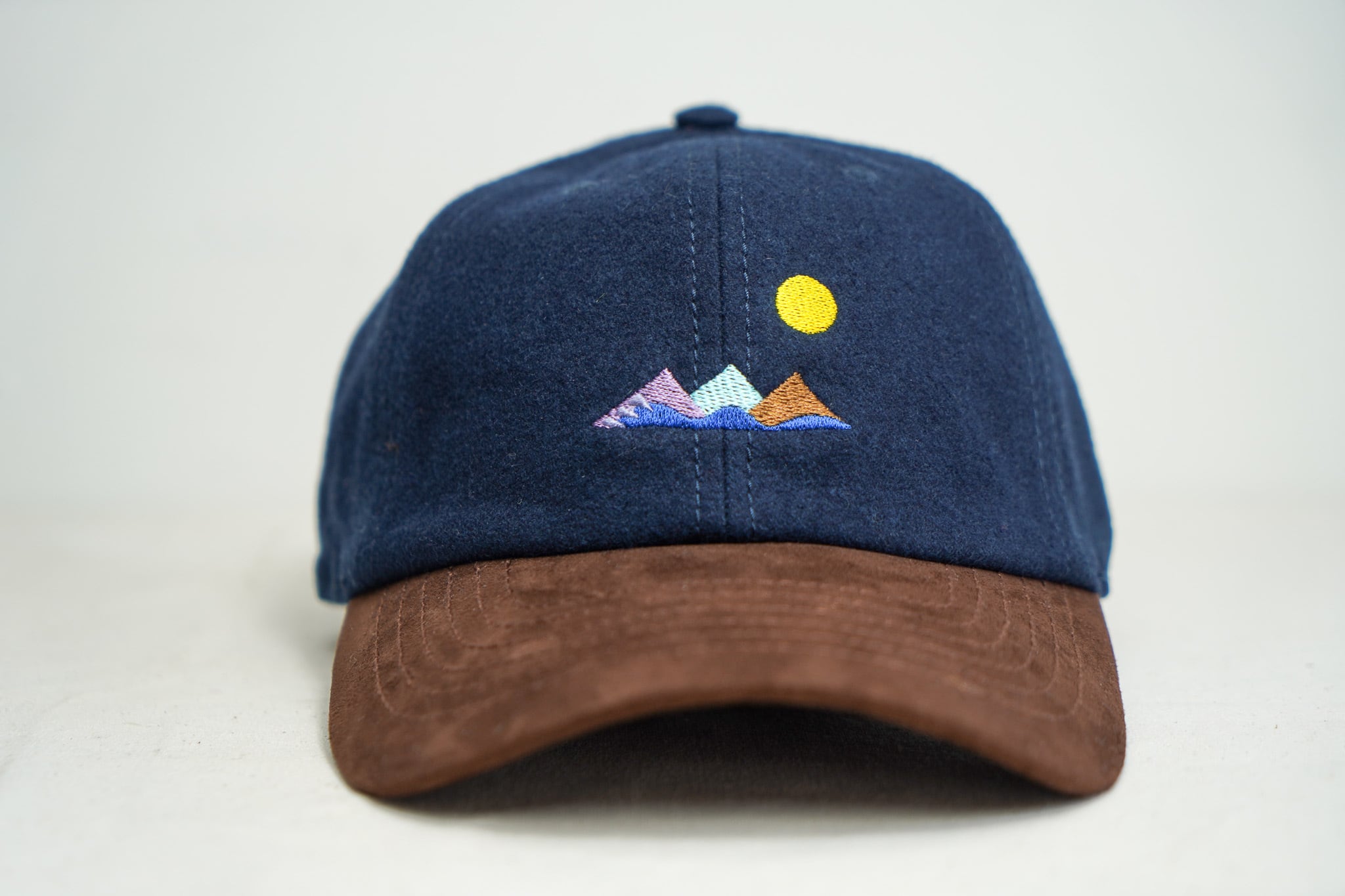 ネイビーボディにブラウンのツバを合わせ 海と土を感じる落ち着いた配色はアウトドア感で野外のイメージで仕上げました